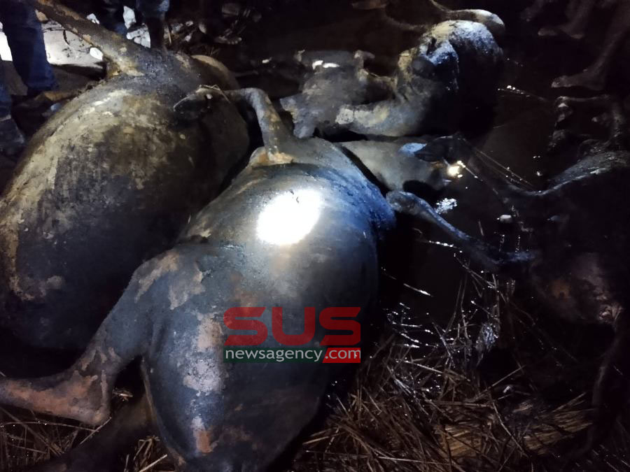 তালাবদ্ধ অবস্থায় অসহায় গরুগুলো গোয়ালঘরে মর্মান্তিকভাবে মৃত্যুবরণ করে।