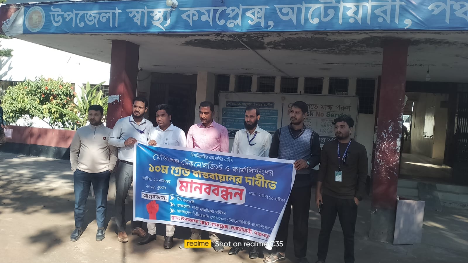 আটোয়ারীতে মেডিকেল টেকনোলজিস্ট ও ফার্মাসিস্টদের মানববন্ধন