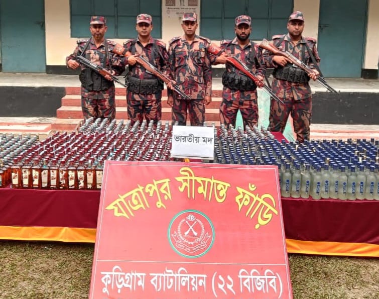 আজ ২রা জানুয়ারি ২০২৫ শুক্রবার দুপুরে বিষয়টি নিশ্চিত করেছেন কুড়িগ্রাম ২২ বিজিবির অধিনায়ক লেফটেন্যান্ট কর্নেল মোহাম্মদ মাহবুব-উল-হক, পিএসসি। এর আগে শুক্রবার রাতে পরিচালিত বিশেষ অভিযানে সীমান্ত এলাকা থেকে ১ হাজার ৪৬ বোতল ভারতীয় মদ, ১৩৯ পিস ইয়াবা ও ৫ কেজি গাঁজা উদ্ধার করা হয়। বিজিবি জানায়, কুড়িগ্রাম ব্যাটালিয়নের দায়িত্বপূর্ণ সীমান্ত এলাকায় মাদক ও চোরাচালানী পণ্য পাচাররোধে বর্ডার গার্ড বাংলাদেশ সদর দপ্তরের নির্দেশনা অনুযায়ী জিরো টলারেন্স নীতি অনুসরণ করে নিয়মিত অভিযান পরিচালনা করা হচ্ছে। এরই ধারাবাহিকতায় ব্যাটালিয়নের সদস্যদের অক্লান্ত প্রচেষ্টা ও পেশাদারিত্বে সীমান্ত দিয়ে ভারত হতে পাচার হয়ে আসা বিপুল পরিমাণ মাদকদ্রব্য আটক করা সম্ভব হয়েছে। কুড়িগ্রাম ২২ বিজিবির অধিনায়ক লেফটেন্যান্ট কর্নেল মোহাম্মদ মাহবুব-উল-হক, পিএসসি জানান, সীমান্ত দিয়ে অবৈধভাবে মাদক ও চোরাচালানী পণ্য পাচার রোধে সকল বিওপিকে সার্বক্ষণিক সতর্কতা ও দিকনির্দেশনা প্রদানের পাশাপাশি আমি নিজেও সরেজমিনে বিশেষ অভিযানে অংশগ্রহণ করছি।