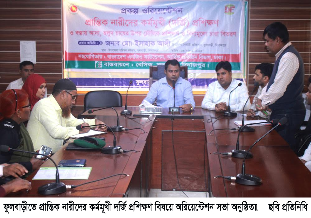 ফুলবাড়ীতে প্রান্তিক নারীদের কর্মমূখী দর্জি প্রশিক্ষণ বিষয়ে অরিয়েন্টেশন সভা অনুষ্ঠিত