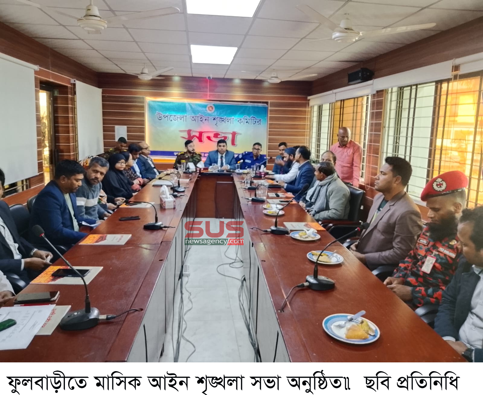 ১০টায় ফুলবাড়ী উপজেলা নির্বাহী অফিসারের সভাকক্ষে মাসিক আইন শৃঙ্খলা সভা ও