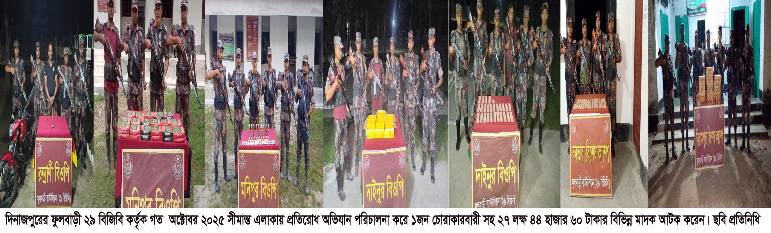 দিনাজপুরের ফুলবাড়ী ২৯ বিজিবি কর্তৃক গত অক্টোবর ২০২৫ সীমান্ত