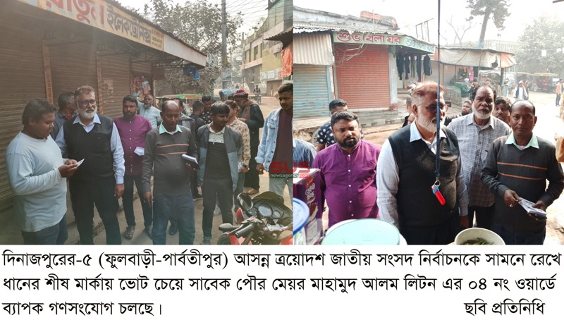 ওয়ার্ডে ব্যাপক গণসংযোগ চলছে। গতকাল রবিবার সকালে ফুলবাড়ী পৌরসভার