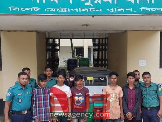 ঘটনায় আটককৃতরা হচ্ছে এয়ারপোর্ট থানার ধোপাগুল উমদারপাড়া (বর্তমানে ঘাসিটুলা কলাপাড়া চাঁন মিয়ার বাড়ী) এলাকার আবুল হোসেনের ছেলে মো. জাকারিয়া (২১), তাহিরপুর উপজেলার রতনশ্রী গ্রামের (বর্তমানে ঘাসিটুলা কলাপাড়া নুর মিয়ার বাসা) সুহেল আহমদের ছেলে তুষার আহমদ (২০), একই উপজেলার কাউকান্দি গ্রামের (বর্তমানে শেখঘাট কলাপাড়া শওকতের বাসা) ফজলুল হকের ছেলে ছুফায়েল আহমদ (১৯), চাঁদপুর সদর উপজেলার ভিঙ্গুলিয়া গ্রামের (বর্তমানে ঘাসিটুলা কলাপাড়া, দূর্বার-৬৯/১) মঈনউদ্দিন খাঁনের ছেলে সাগর আহমদ (১৮) ও লাখাই উপজেলার বামুই গ্রামের (বর্তমানে ঘাসিটুলা লামাপাড়া, দূর্বার-৬২) মো. লায়েছ মিয়ার ছেলে খোকন আহমদ আব্দুল্লাহ (১৮)।